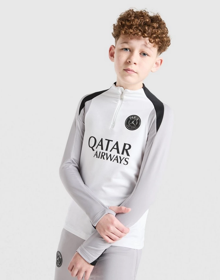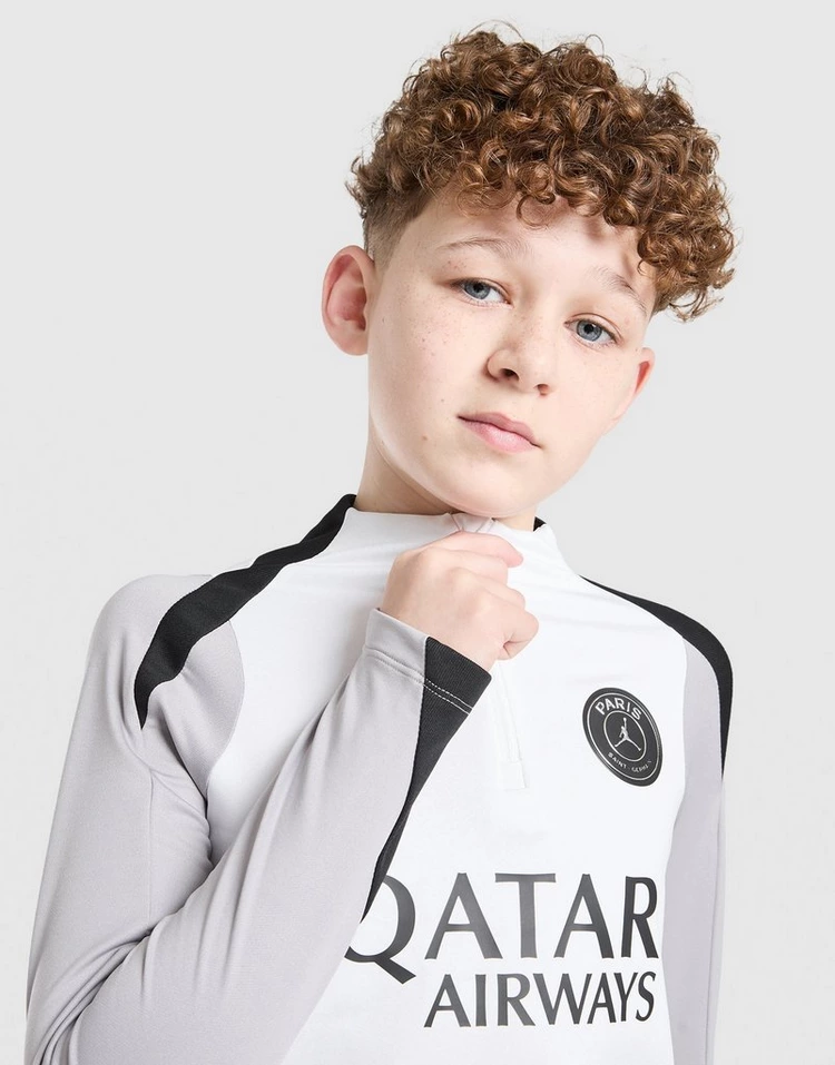 |Train net zo scherp als Les Parisiens met deze Paris Saint Germain Strike Drill Top voor junioren van Jordan. Deze slim-fit trainingstop is uitgevoerd in een kleurblokdesign in wit, zwart en Atmosphere Grey en is gemaakt van een soepele, elastische gebreide stof. Nike Dri-FIT-technologie voert zweet af en houdt je koel, terwijl een kwartrits in de kraag en duimgaten de pasvorm aanpassen. Afgewerkt met het Paris-logo op de achterkant en het beroemde Jumpman x PSG-embleem op de voorkant. Machinewasbaar.